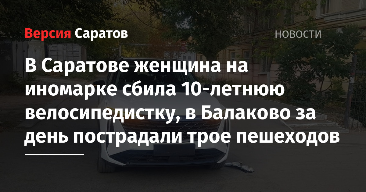 Вчера, 19 сентября, в Саратове и Балаково произошло четыре ДТП, в результате которых были сбиты пешеходы, ещё в одной аварии пострадала девочка, ехавшая на велосипеде. О подробностях сообщили в Госавтоинспекции по Саратовской области.