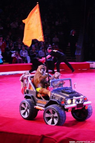 Кроме гиппопотамов, в программе участвуют обезьяны, попугаи, лошади и собаки. Развлекает зрителей клоун Чудик.