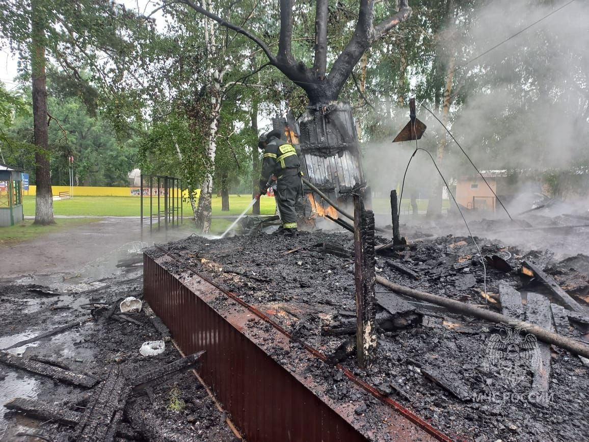 Информация о происшествии поступила в 7:41. Загорелось металлическое здание медпункта. Пожар случился в отдельно стоящем здании. Угрозы распространения огня и угрозы людям не было.