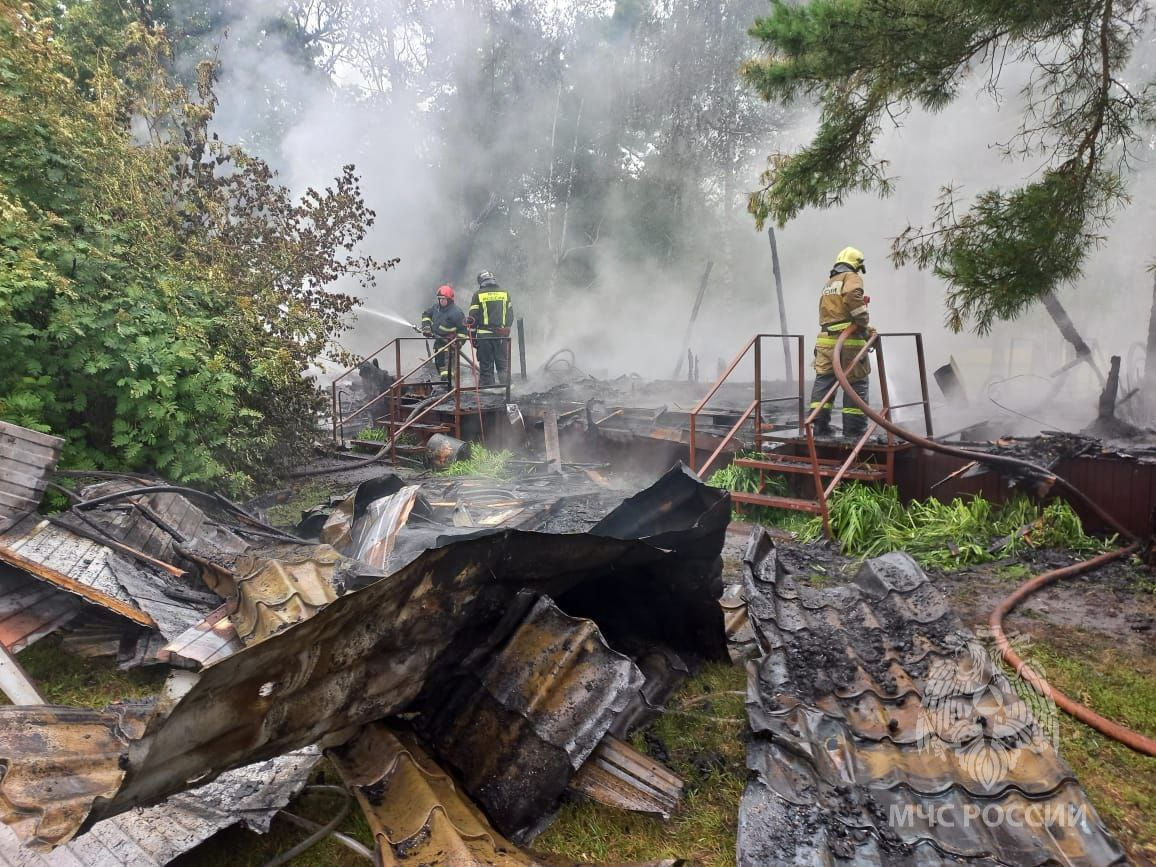 В 8:17 пламя потушили. На месте работают четыре расчёта. Площадь пожара составила 120 квадратных метров.