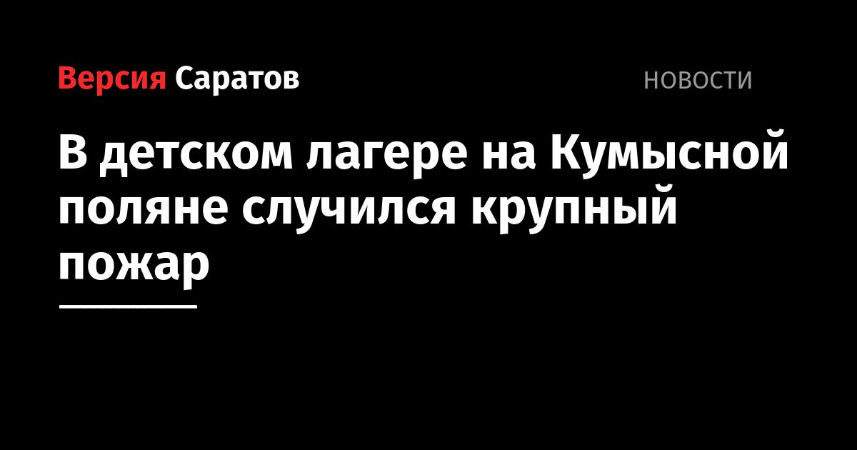 Сегодня утром, 23 июня, в детском лагере «Молодежный» в Саратове произошёл пожар. ДОЛ находится на улице Лесная на территории Кумысной поляны. Об этом сообщили в региональном ГУ МЧС.