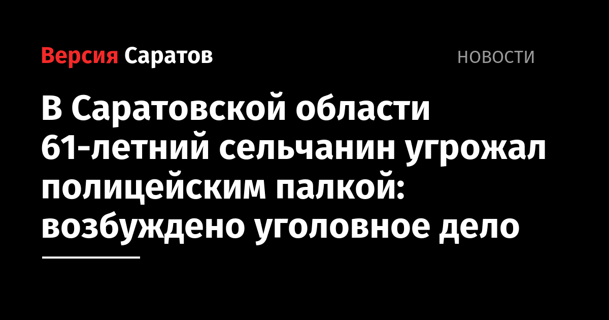 В Саратовской области завершено расследование уголовного дела в отношении 61-летнего мужчины, который угрожал полицейским палкой.