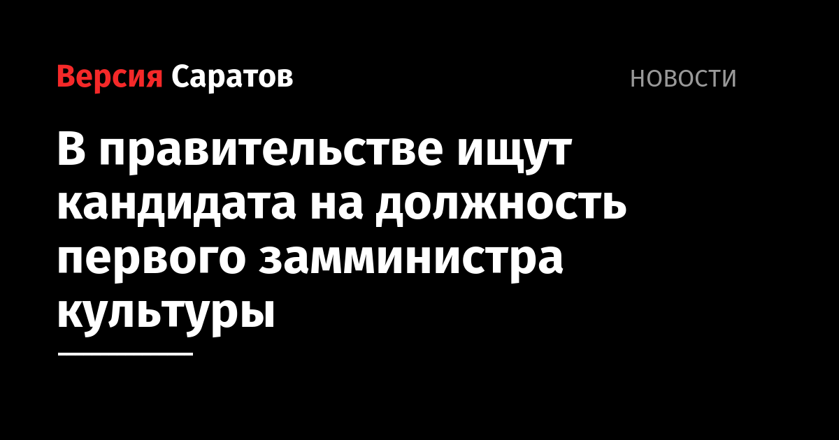 Сегодня, 30 января, был объявлен конкурс на замещение должности первого заместителя министра культуры Саратовской области. Соответствующую информацию правительство региона разместило на официальном портале правовой информации.