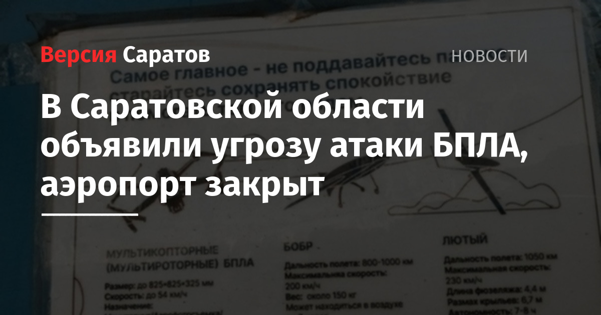 - Ночью в Саратове объявляли угрозу атаки БПЛА и закрывали аэропорт