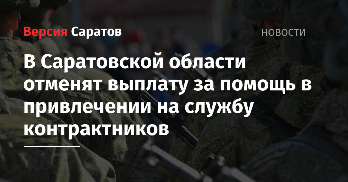 В Саратовской области отменят выплату гражданам, которые оказывают содействие в привлечении контрактников. Соответствующее постановление 24 октября подписал вице-губернатор Михаил Орлов. Вчера, 27 октября, документ разместили на официальном публикаторе.