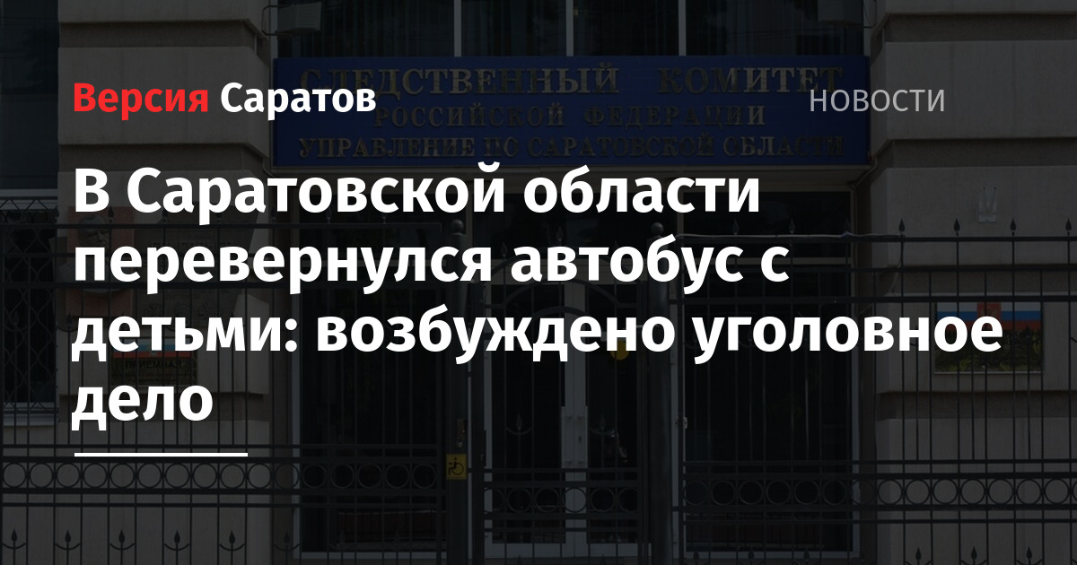 После ДТП с автобусом в Петровском районе Саратовской области возбудили уголовное дело по факту оказания услуг, не отвечающих требованиям безопасности жизни и здоровья потребителей (п. «в» ч. 2 ст. 238 УК РФ). Об этом сообщили в СК РФ.