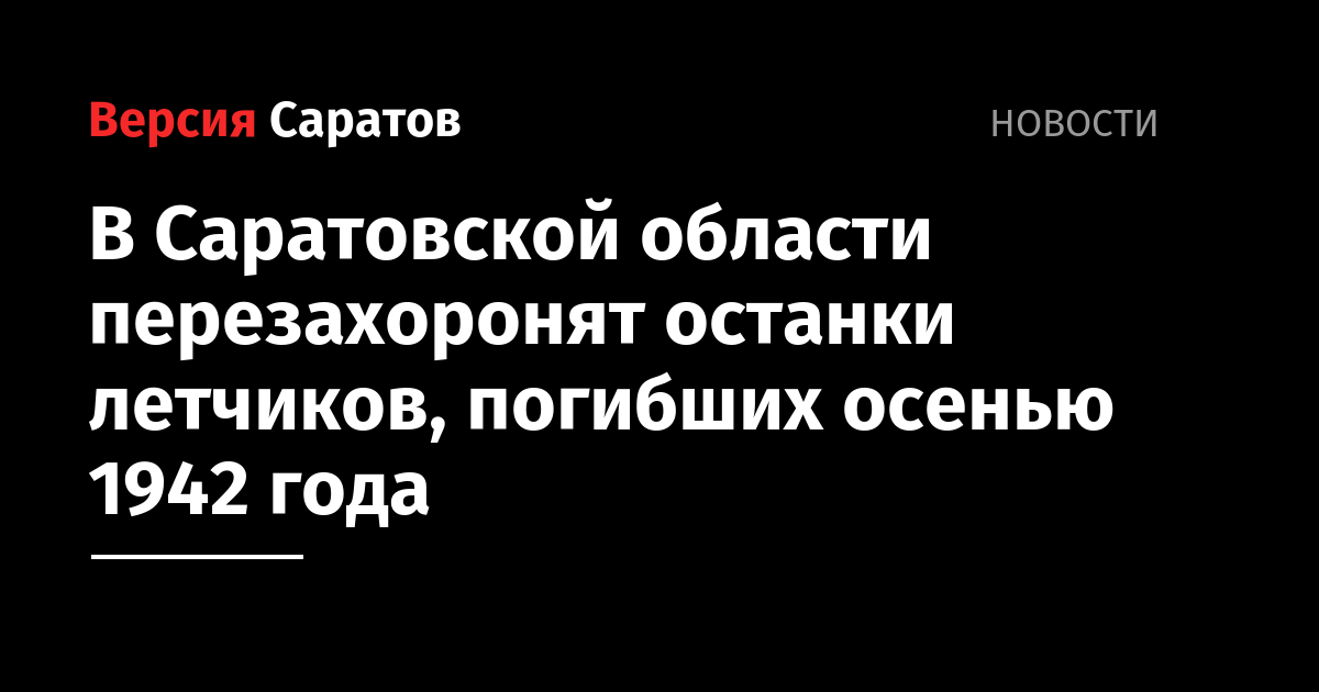 В Саратовской области 6 ноября пройдет церемония перезахоронения останков экипажа 1-й авиационной дивизии дальнего действия. Летчики погибли в воздушном бою 5 октября 1942 года. Они будут погребены в селе Первомайское Балашовского района. По информации министерства внутренней политики региона, траурная церемония организуется в рамках проекта «Защитникам Балашовского неба».