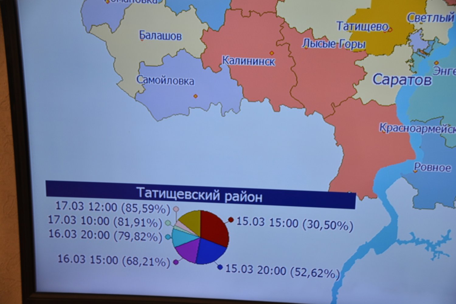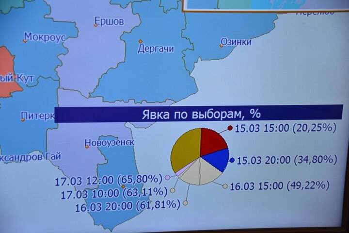 Председатель областной избирательной комиссии Ирина Романова сообщила, что больше всего избирателей пришли в Татищевском (85,59%), Дергачевском, Турковском, Хвалынском и Озинском районах, а также в поселке Михайловский (84,84%). В этих муниципалитетах явка перевалила за 80%. Всего за три дня голосования поступило 24 обращения. Подтвердились только 2 обращения, они связаны с отсутствием избирателя в списке, уточнила председатель избиркома. По остальным просто были даны разъяснения.