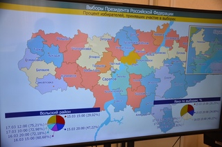 В Саратовской области по предварительным данным на 12:00 явка на выборы президента РФ составила 66,34%. Такие данные приведены на информационном табло в избирательной комиссии Саратовской области.