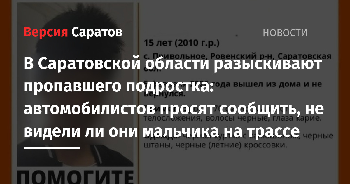«Поисковый отряд „ЛизаАлерт“ обращается к автомобилистам, проезжавшим 5 февраля 2026 года по трассе Р-229 тракту на участке от поселка Ровного до Энгельса с 15:00 до 20:00. Очень просим вас просмотреть записи с регистраторов или предоставить нам для просмотра. Возможно именно вы сможете помочь найти Султана», — говорится в сообщении опубликованном в соцсетях «Лизы Алерт».
