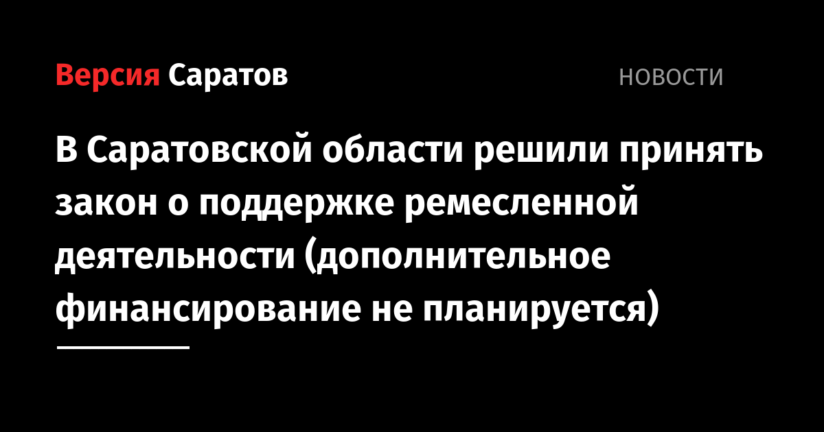 «Проектом закона устанавливаются полномочия правительства Саратовской области по утверждению перечня продуктов труда ремесленников, не подлежащих обязательной маркировке средствами идентификации. Кроме этого, правительство области наделяется полномочием утверждению перечня видов ремесленной деятельности на территории области», — уточняется в пояснительной записке к законопроекту.