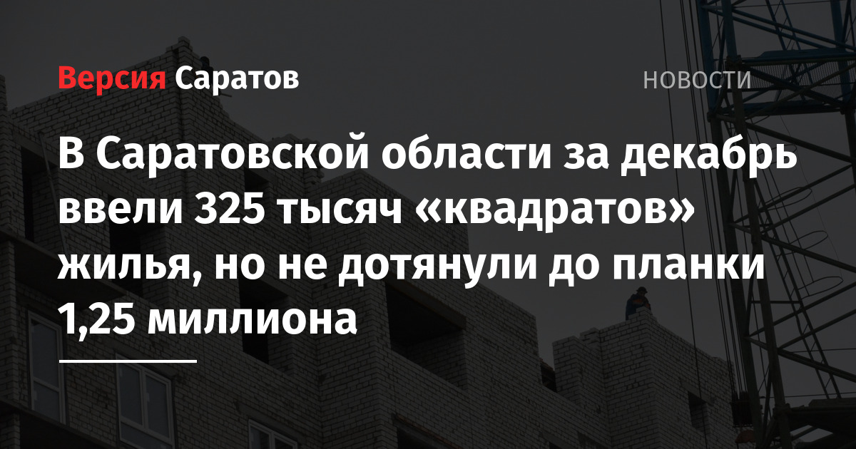 - Министр ждет ввода миллиона квадратных метров жилья в Саратовской области
