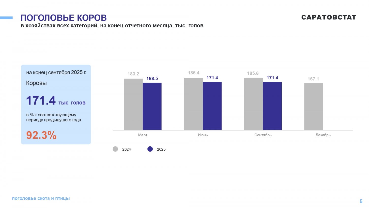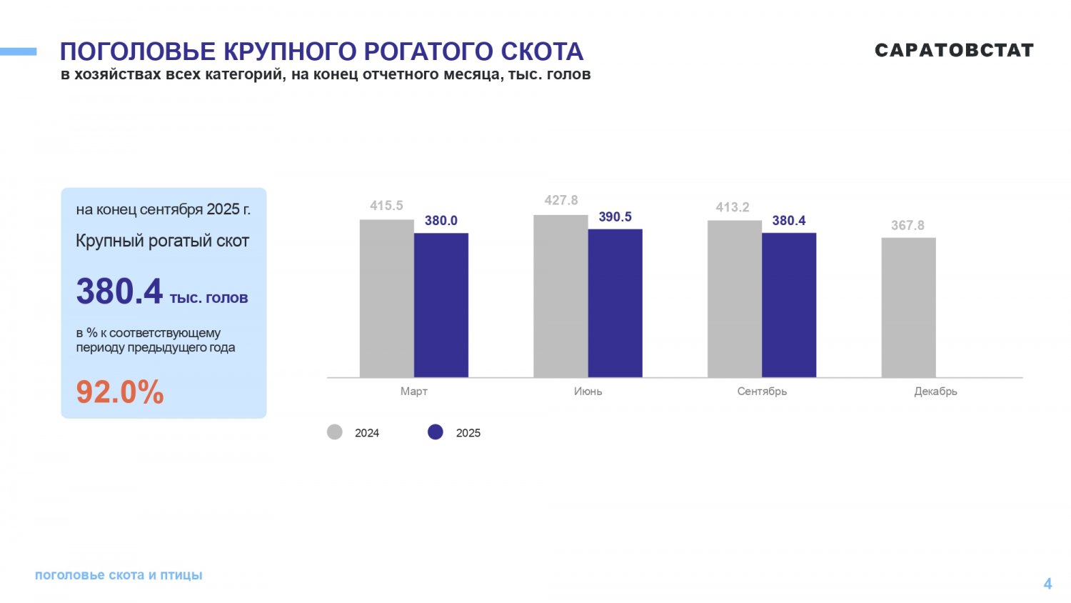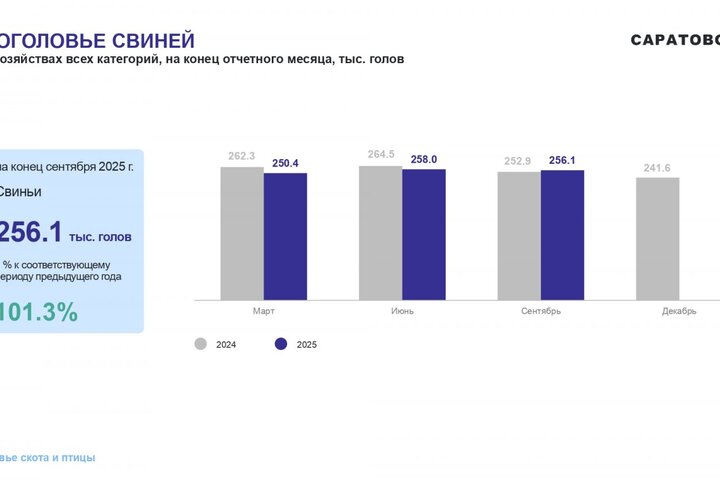 - В Саратовской области продолжает падать численность поголовья крупного и мелкого рогатого скота, но свиней стало больше