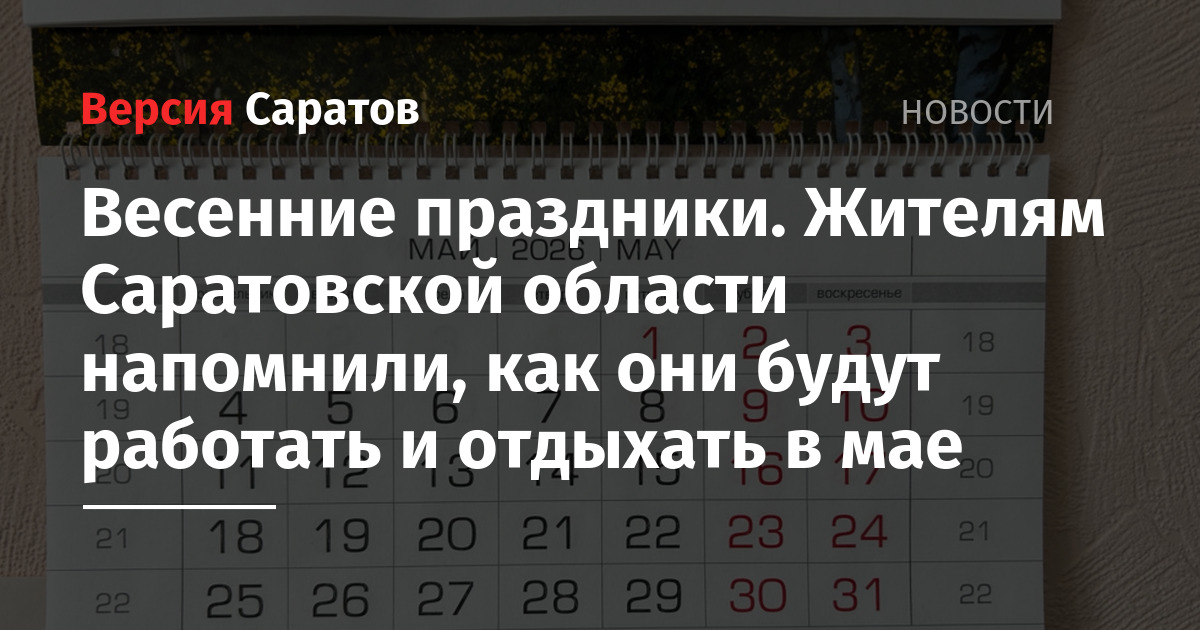 В этом году 1 Мая — Праздник Весны и Труда — приходится на пятницу. С учётом последующих выходных в субботу и воскресенье, работающие в режиме пятидневной рабочей недели отдыхать будут три дня — 1, 2 и 3 мая. Работающие в режиме шестидневной рабочей недели отдыхать будут 1 мая и 3 мая, а 2 мая станет для них рабочим днём, если иное не предусмотрено локальными актами организации. 30 апреля будет для всех работников рабочим днём, сокращённым на час.