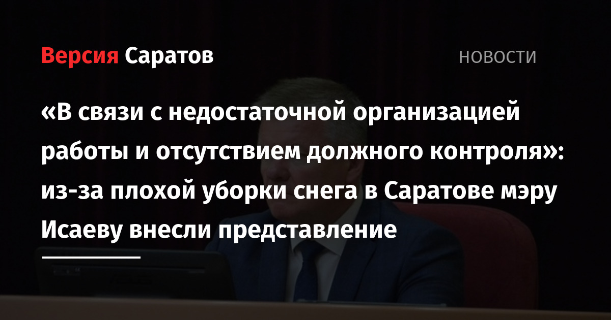 Главе Саратова Михаилу Исаеву внесли представление за плохую уборку города от снега. Об этом сообщили в региональной прокуратуре.