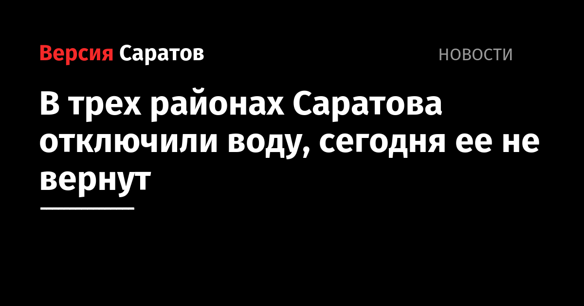 Сегодня, 30 сентября, в трех районах Саратова проходят отключения холодной воды. Ее подачу не восстановят до полуночи. Об этом сообщили в МУПП «Саратовводоканал».