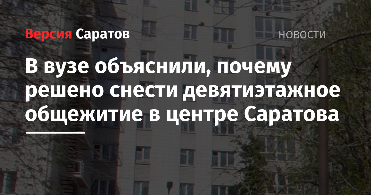 В вузе объяснили, почему решено снести девятиэтажное общежитие в центре Саратова