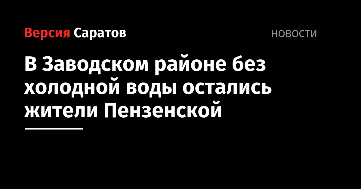 В Заводском районе Саратова отключили холодную воду. В ООО «КВС» сообщают, что отключение связано с повреждениями на городском водопроводе.