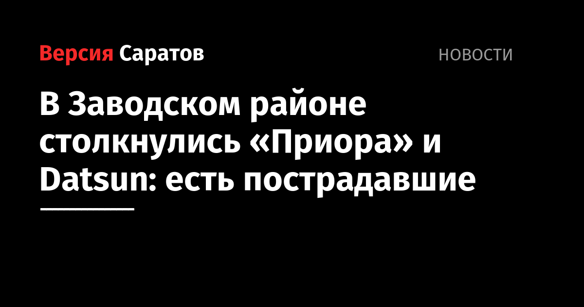 В ночь с пятницы на субботу на улице Орджоникидзе в Саратове произошло ДТП. Напротив дома № 121А столкнулись Datsun и «Лада Приора». Иномаркой управлял 33-летний водитель, за рулем отечественной легковушки находился 24-летний молодой человек.