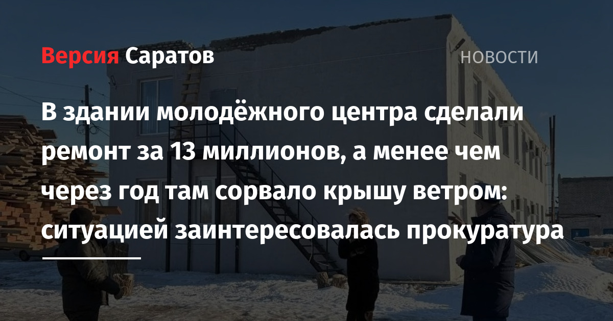 Здание муниципального молодежного центра в Александрово-Гайском районе, где сделали дорогостоящий ремонт, менее чем через год осталось без крыши после сильного ветра. Прокуратура проверяет информацию о ненадлежащей работе центра, о чём проинформировали в пресс-службе надзорного органа.
