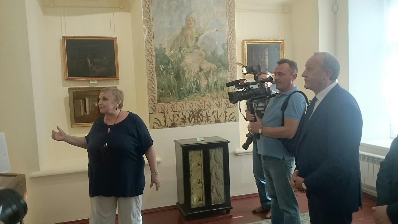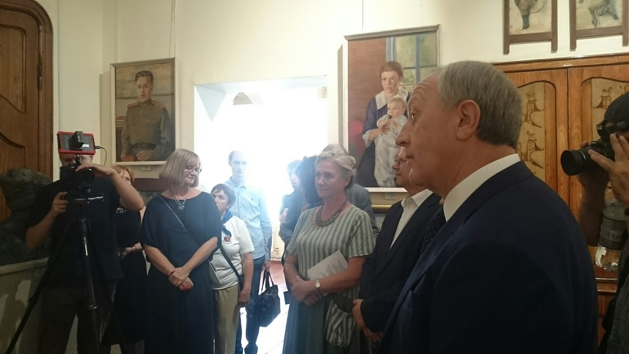 Затем глава региона побывал на открытии новой выставки в картинной галерее Хвалынска, где представлены работы друзей-художников Петрова-Водкина из фондов Саратовского государственного художественного музея имени Радищева. Экскурсовод предложила узнать земляка — художника на стенде из 6 фотографий. Радаев сделал это с первого раза.
