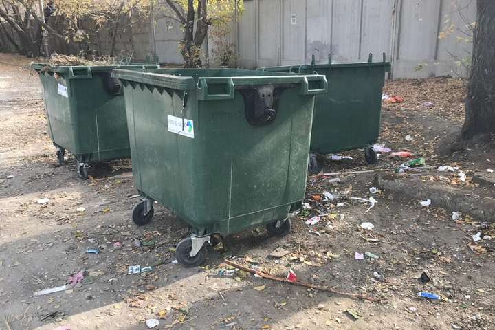 На фотографиях, которые опубликовали местные жители, видно, что у одного из баков нет стенки, в остальных имеются трещины. В результате мусор из них вывалился на дорогу, ветер уже разметал его по улице.