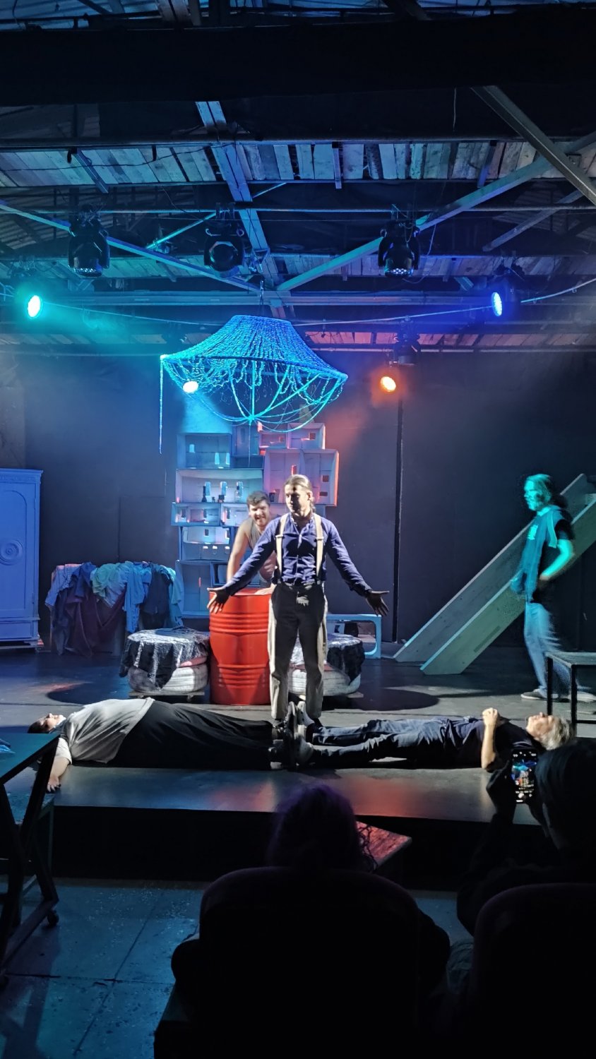 Смысл такой, что действующие лица — это такие отбросы общества, которые живут на всем, что не нужно человечеству. То есть люди, не знающие уюта, такие… Благооставленные люди. Поэтому какие-то остатки чужой жизни — на них, остатки чужой жизни — на сцене.