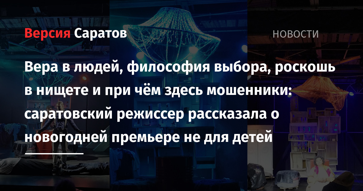 Вера в людей, философия выбора, роскошь в нищете и при чём здесь мошенники: саратовский режиссер рассказала о новогодней премьере не для детей