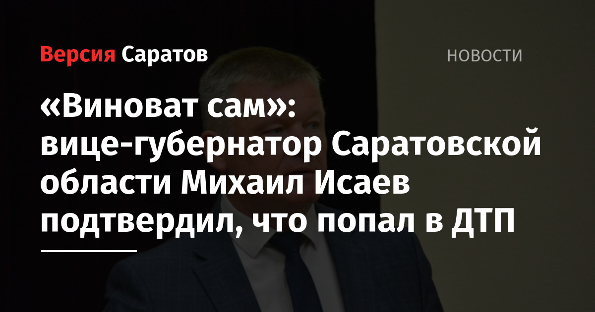 «Виноват сам»: вице-губернатор Саратовской области Михаил Исаев подтвердил, что попал в ДТП