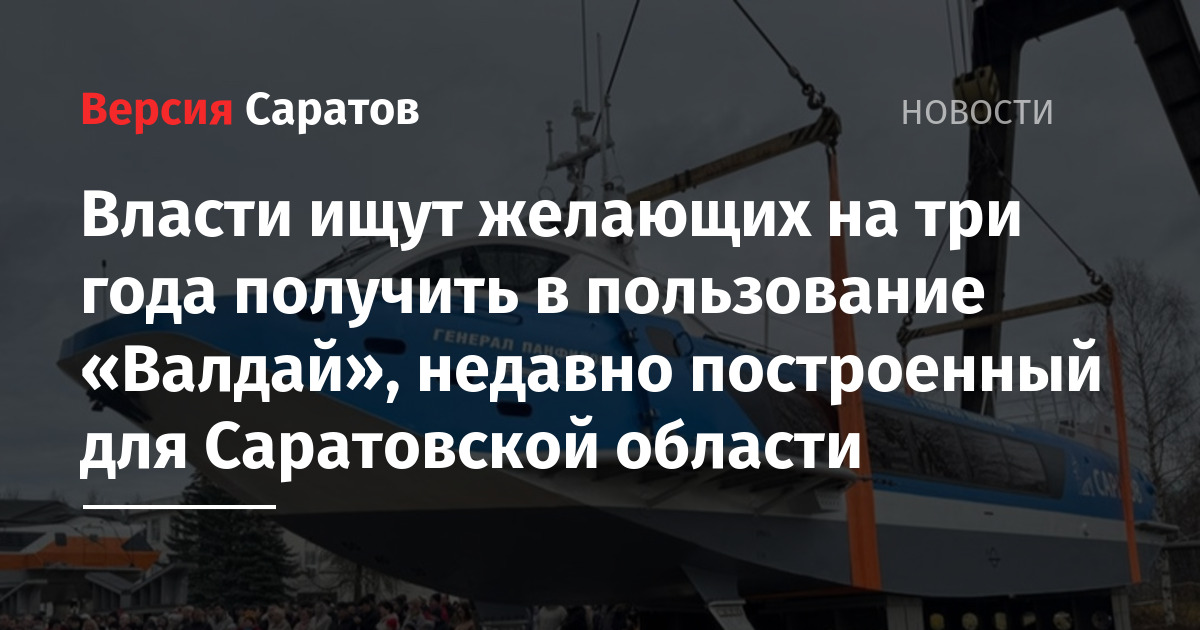 Министерство транспорта Саратовской области, по согласованию с региональным Комитетом по управлению имуществом, объявило торги на право аренда «Валдая». Название судна на подводных крыльях — «Генерал Панфилов».