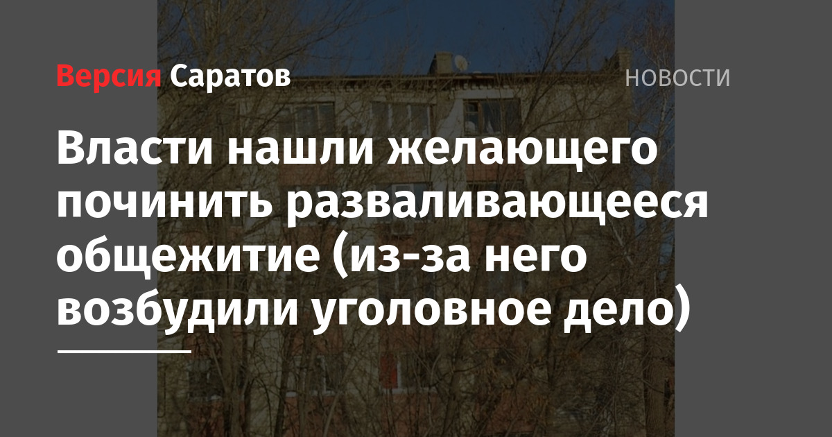 - После очередного федерального телесюжета про жуткое аварийное общежитие в Саратове возбуждено уголовное дело по факту халатности