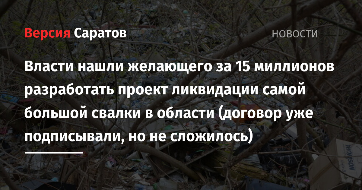 - Власти нашли 20 миллионов рублей на проект для ликвидации свалки, но пока их не получается потратить
