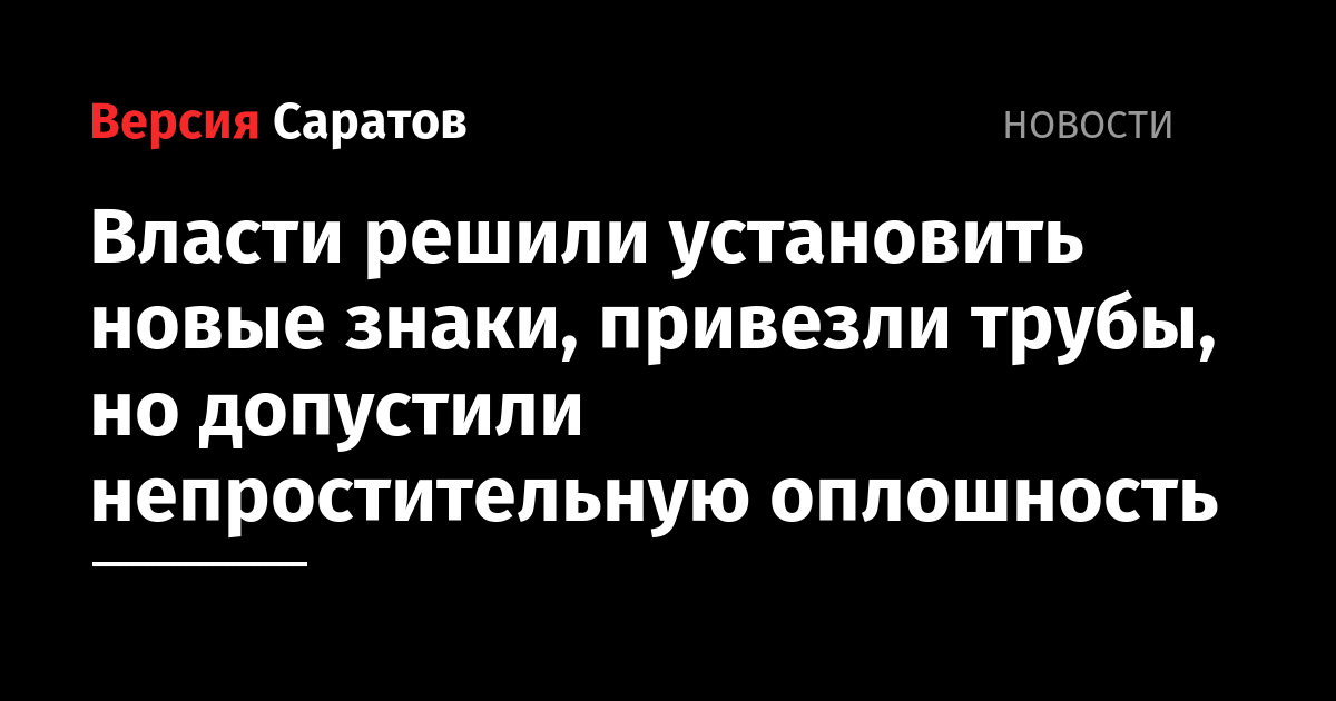 Как стало известно ИА «Версия-Саратов», трубы лежали вдоль дороги — их привезли чиновники для установки знаков и оставили. Самих знаков там не было.