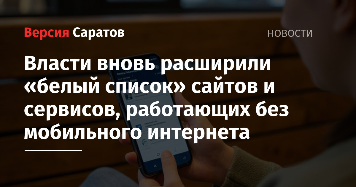 Без мобильного интернета теперь будут доступны сайты Совета Федерации, МВД, МЧС, авиакомпаний «Аэрофлот» и «Победа», «Россетей», Московской биржи, HeadHunter, сайт «Итоги года с Владимиром Путиным». Среди компаний в «белый список» попали сервис «Ситидрайв», сеть ресторанов быстрого питания «Вкусно и точка», «Деловые линии», онлайн-кинотеатр «Иви», а также супермаркеты «Вкусвилл», «Ашан», «Спар», Metro, «Петрович».