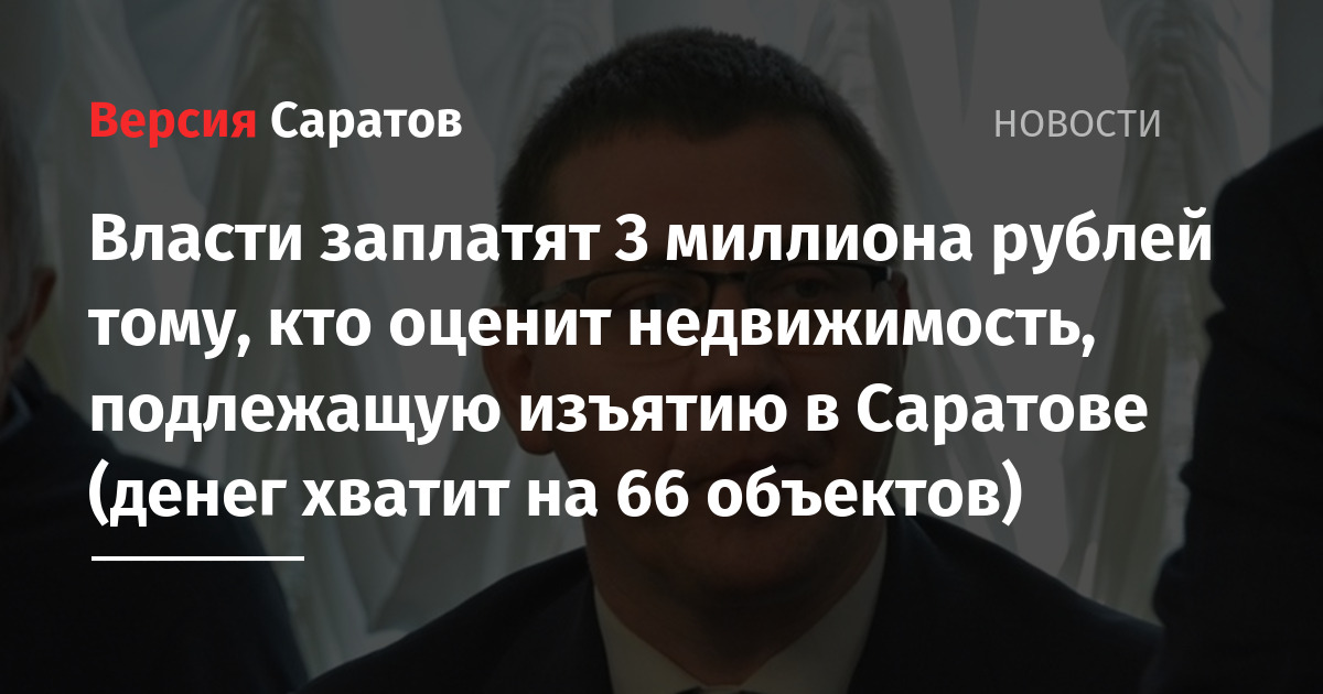 Власти заплатят 3 миллиона рублей тому, кто оценит недвижимость, подлежащую изъятию в Саратове (денег хватит на 66 объектов)