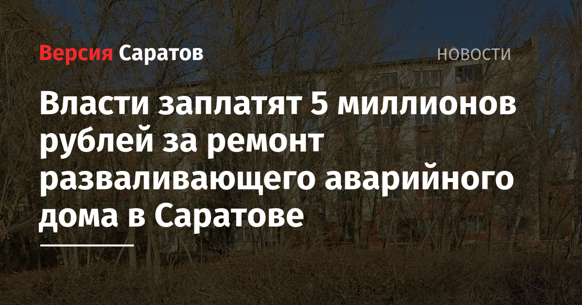 Власти заплатят 5 миллионов рублей за ремонт разваливающего аварийного дома в Саратове