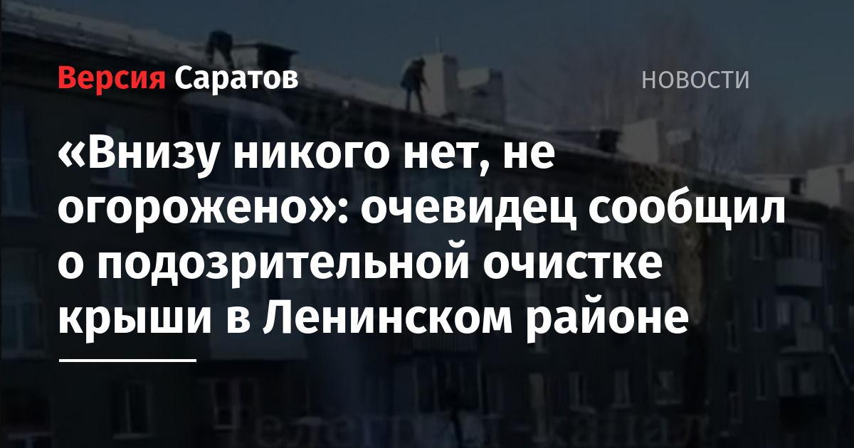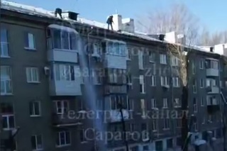 Качество очистки крыши дома в Ленинском районе (глава Игорь Молчанов) Саратова возмутило местного жителя. Видео с места проведения работ появилось в Telegram-канале «Саратов+».
