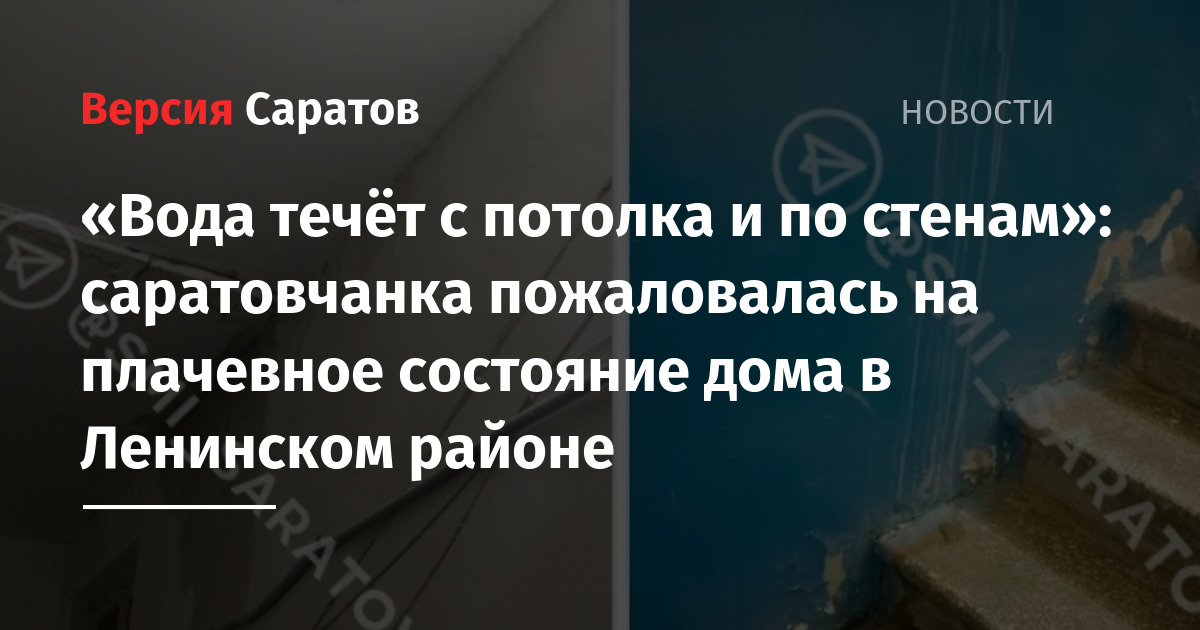 Жительница Ленинского района Саратова пожаловалась на то, что в её доме с потолка льётся вода. Пост с описанием такой проблемы появился в Telegram-канале «Новости Саратова и области».