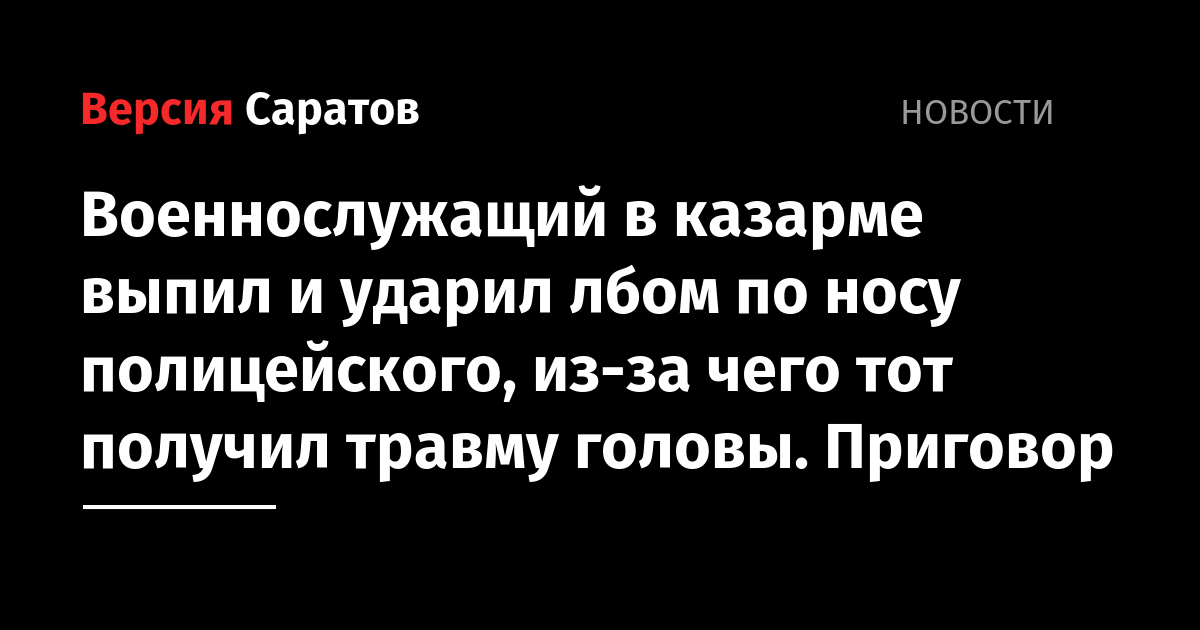 Военнослужащий в казарме выпил и ударил лбом по носу полицейского, из-за чего тот получил травму головы. Приговор