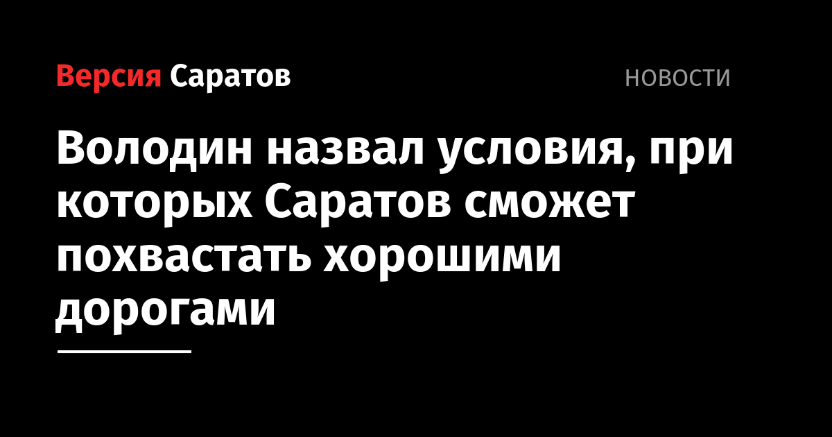 Володин назвал условия, при которых Саратов сможет похвастать хорошими дорогами