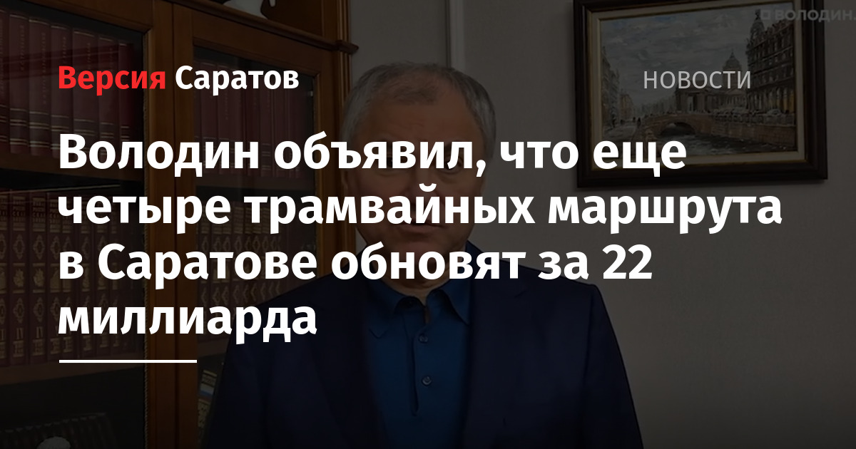 «Вот сейчас могу сказать, и, может быть, даже всех правильно будет поздравить: получилось выйти на решение, мы его обсуждали с председателем правительства РФ, и достигнута договоренность о модернизации саратовского городского трамвая, чтобы у нас маршруты были скоростными, комфортабельными, но и самое главное, чтобы депо преобразились», — заявил спикер Госдумы Вячеслав Володин в видеообращении, которое опубликовали его сторонники.