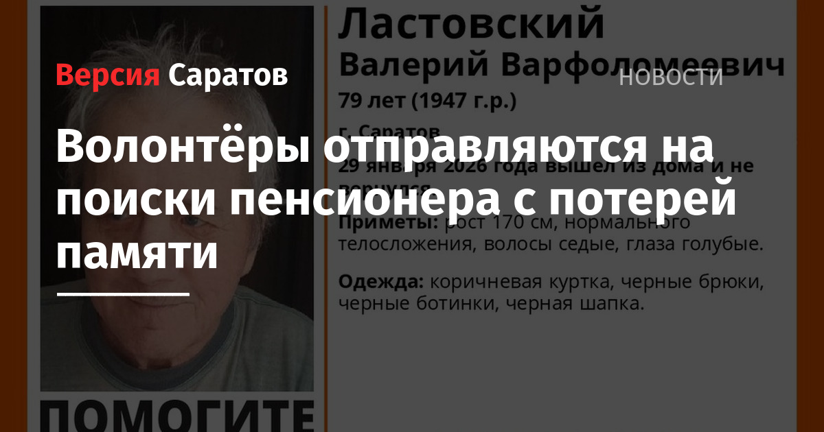 Волонтёры разыскивают пропавшего 79-летнего Валерия Ластовского из Саратова. Как сообщили в поисковом отряде «„Лиза Алерт“ Саратовской области», с сегодняшнего дня, 29 января, его местоположение неизвестно.