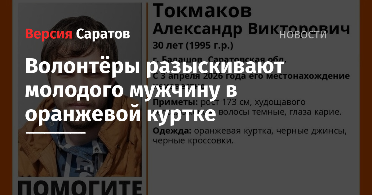 Волонтёры разыскивают пропавшего 30-летнего Александра Токмакова из Балашова. Как сообщили в поисковом отряде «„Лиза Алерт“ Саратовской области», его местоположение неизвестно с 3 апреля.