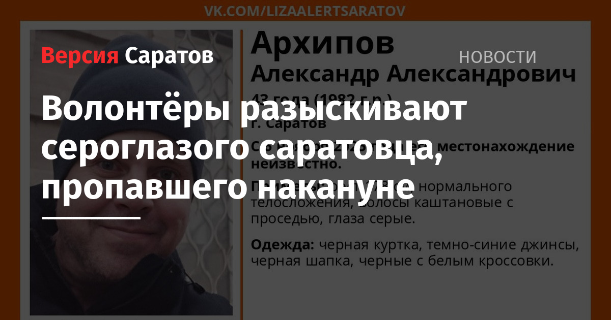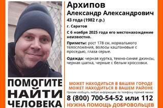 Волонтёры разыскивают пропавшего 43-летнего Александра Архипова из Саратова. Как сообщили в поисковом отряде «„Лиза Алерт“ Саратовской области», со вчерашнего дня, 6 ноября, его местоположение неизвестно.