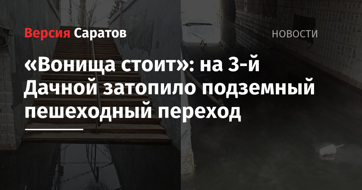 В Саратове затопило подземный пешеходный переход на 3-й Дачной (Ленинский район, глава — Артем Курочкин). Об этом сообщила пользователь под именем Марина в Telegram-чате мэра Игоря Молчанова.