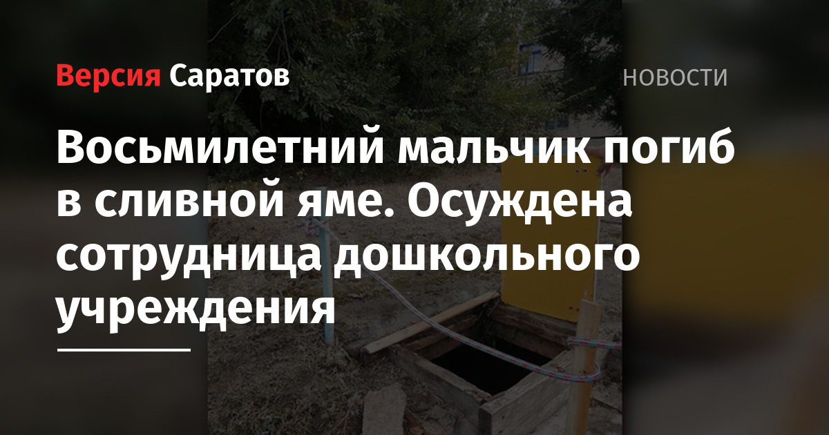 По информации ведомства, женщина не обеспечила перекрытие крышкой сливной ямы, которая относилась к дошкольному учреждению в селе Перелюб. В результате этого 9 сентября прошлого года восьмилетний мальчик упал туда и погиб.