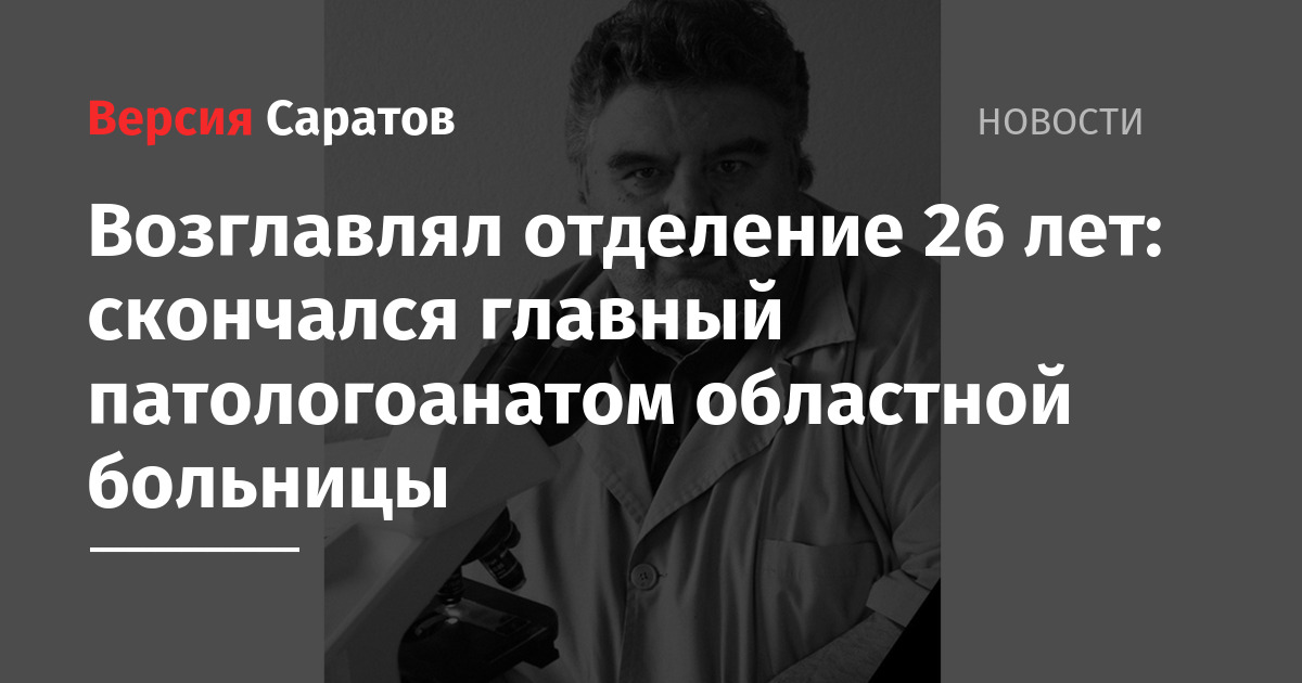 Сегодня, 24 ноября, на 59-м году жизни скончался Алексей Алхимов, который много лет руководил патологоанатомическим отделением Саратовской областной больницы. Об этом рассказали в Telegram-канале медицинского учреждения.