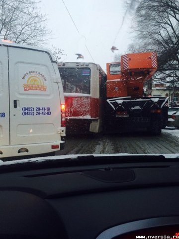 Сегодня днем на перекрестке улиц Рабочей и Степана Разина столкнулись автокран с трамваем маршрута № 9. По сообщению очевидцев, возле перекрестка автомобиль притерся к вагону трамвая и заблокировал две двери. В результате происшествия никто не пострадал. Однако оказалось парализовано движение трамваев маршрутов №№ 9 и 10, а также затруднено движение автомобилей.