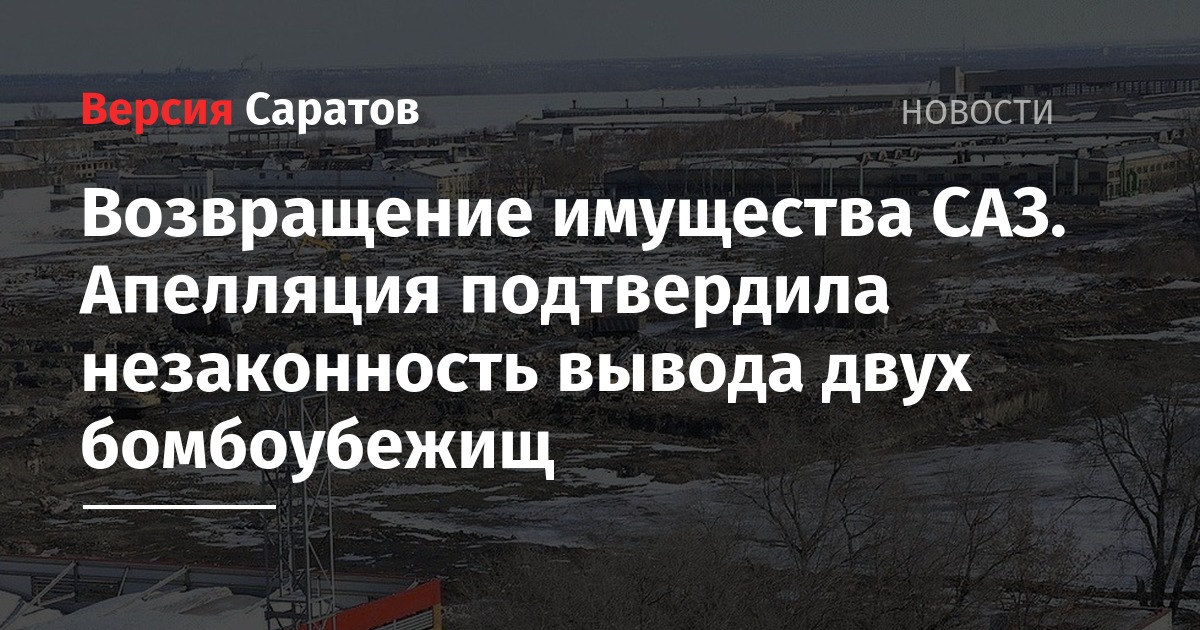 Двенадцатый апелляционный арбитражный суд оставил в силе решение суда первой инстанции о возвращении в собственность Российской Федерации двух бомбоубежищ на территории бывшего Саратовского авиационного завода. Решение апелляционной инстанции было принято 12 февраля.