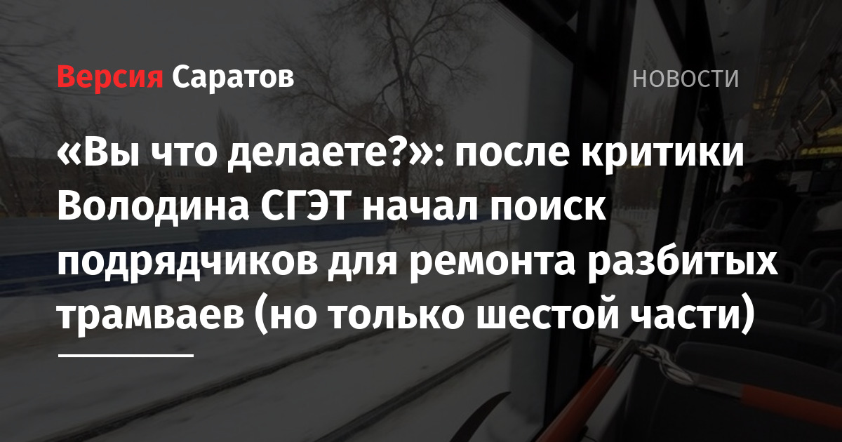 Еще в первый рабочий день после новогодних праздников — 12 января — спикер Госдумы Вячеслав Володин раскритиковал саратовских чиновников за то, что почти половина новых трамваев «стоит на приколе». По его данным, от 16 до 20 из 45 новых вагонов не выходят на маршруты, потому что их не отремонтировали после ДТП. «Вы что делаете? Это от кого зависит?» — возмущался Володин.